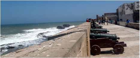 Essaouira is where you can really start to relax. A stroll around the 18th century ramparts complete with brass cannons opens pleasant views of the rocky coastline, although the strong coastal winds can mean digging for a jumper. Because of the wind, the crescent-shaped beach is popular with all kinds of surfers and the odd hippy-type character can be spotted wandering around the maze-like streets. You can meander the streets freely here, without any pressure from pushy salesmen, and you're just as likely to see inflatable dinghies and beach balls being sold alongside the standard rugs and clothes. Unsurprisingly, seafood is a specialty here and on strolling the harbour, local fishermen can be seen mending their nets and working on their boats, closely shadowed by colonies of well-fed seagulls.